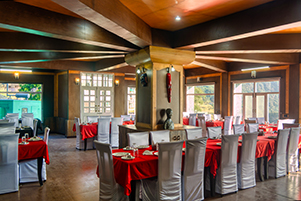 | Ashoka’s Naini Chalet resort has a huge restaurant which provides Buffet and ala carte meals to the in house guests. The restaurant is artistically designed with glass windows providing uninterrupted view of nature and the beautiful Himalayan Mountains. The restaurants have been designed in lines with the chalet located in the Swiss Alps thus providing a cosy and comfortable feel even when it’s chilling outside. Natural Deodar wood has been used to make the entire restaurant which provides a unique fragrance typical of hill stations. One can relax and enjoy the sumptuous multi cuisine food offered by the chefs at Naini Chalet. The restaurant specializes in serving local delicacies which are quite unique and mouthwatering. Fresh village grown ingredients are usually used from local market and the resorts farms.